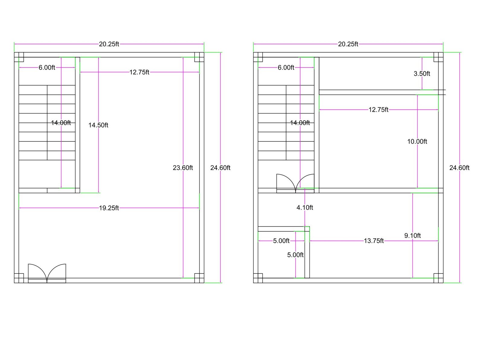 Explore this smartly designed 20×25 feet mixed-use building plan that combines commercial and residential functionality within a compact urban plot. The actual plot size is 20.25 feet × 24.60 feet, making it ideal for narrow roadside properties, small town markets, and developing urban areas.